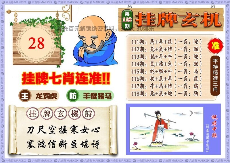116期挂牌玄机:天门街上倒天枢,只于池曲象山幽 解:诗人以星象倒转的奇观(天枢)与山水幽深之景(池曲象山)相对比,可能表达对超然物外境界的向往,或暗含对自然规律与人文隐逸的思考 六肖:兔牛鸡羊鼠马 12码:15.27.29.41.21.33.23.35.18.30.12.24 平特一肖:马马马 |